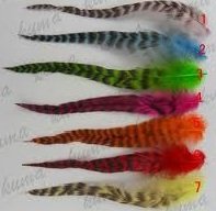 - (7) Individual 4"-6" in Length Feathres in : Black & white Grizzly, Turquoise,Green,Hot Pink, Orange, Red & yellow 7 feathers!